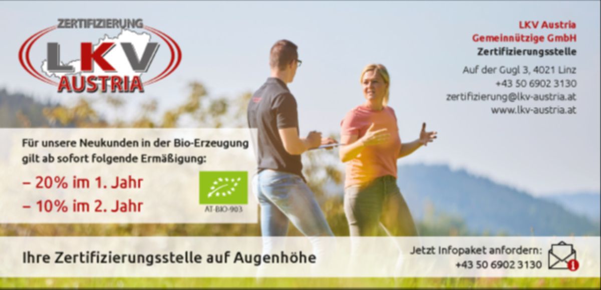 Die LKV Austria ist eine in Österreich aufstrebende Zertifzierungsstelle und betreut derzeit österreichweit 12.500 Kunden, die auf die Tätigkeit der LKV Austria und deren MitarbeiterInnen vertrauen. Neben den klassischen Betrieben in der Rinderhaltung und reinen Ackerbaubetrieben bieten wir auch in vielen anderen Bereichen unser Knowhow als Kontrollstelle an.