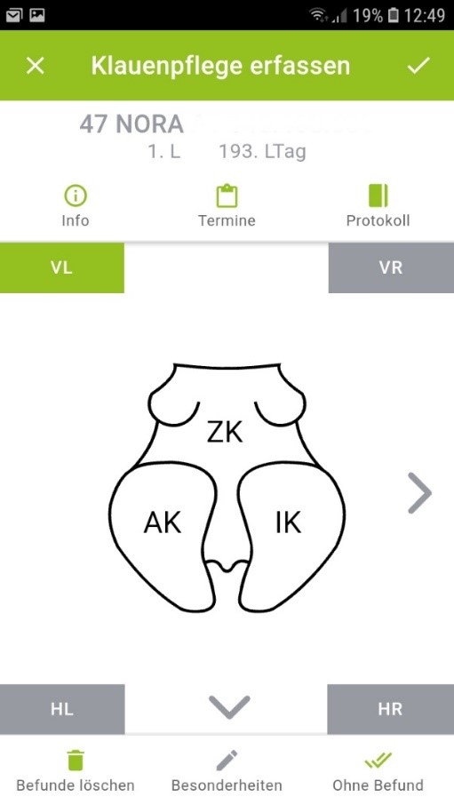 • schnelle Erfassung der durchgeführten Klauenpflege