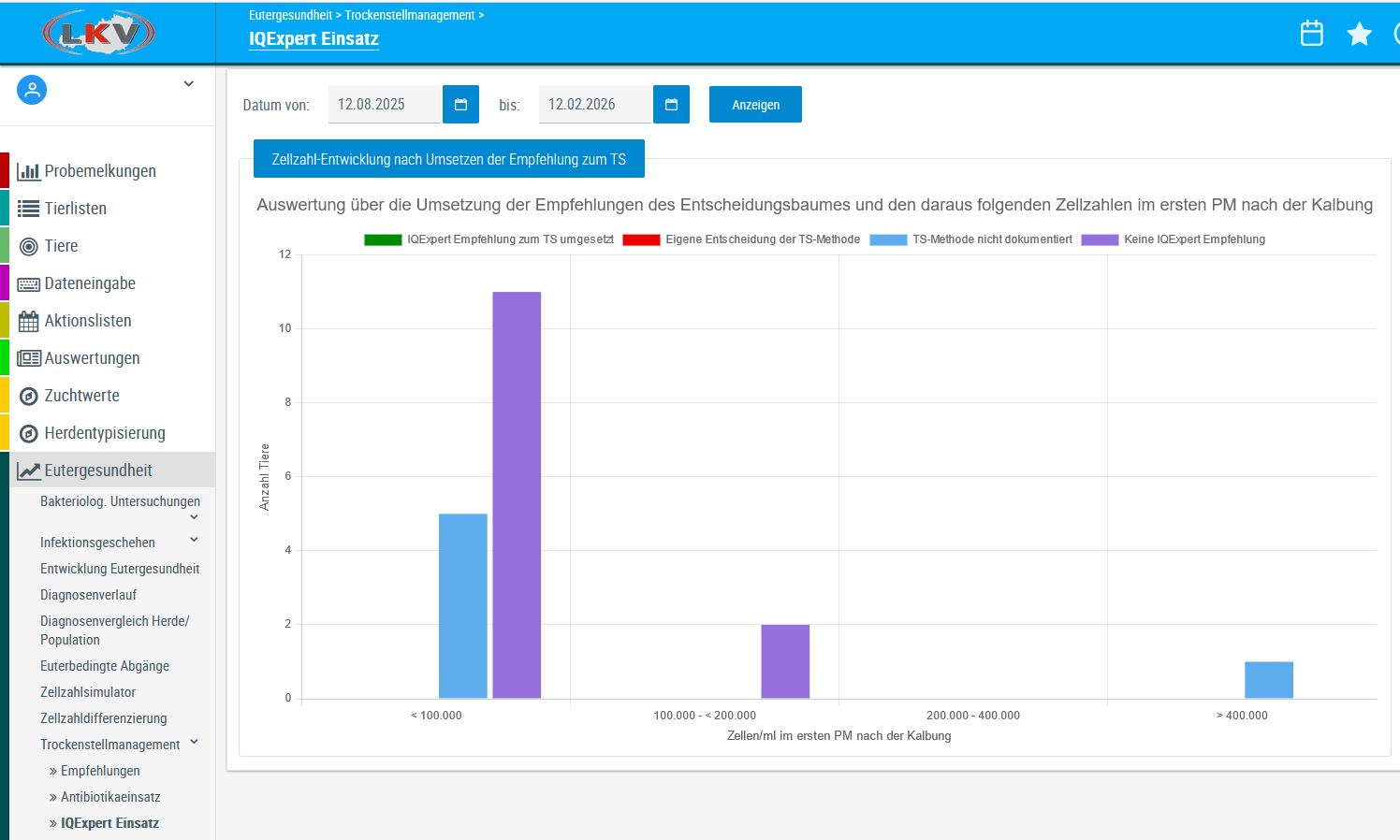 Abbildung 1:Trockenstellempfehlung im LKV Herdenmanager