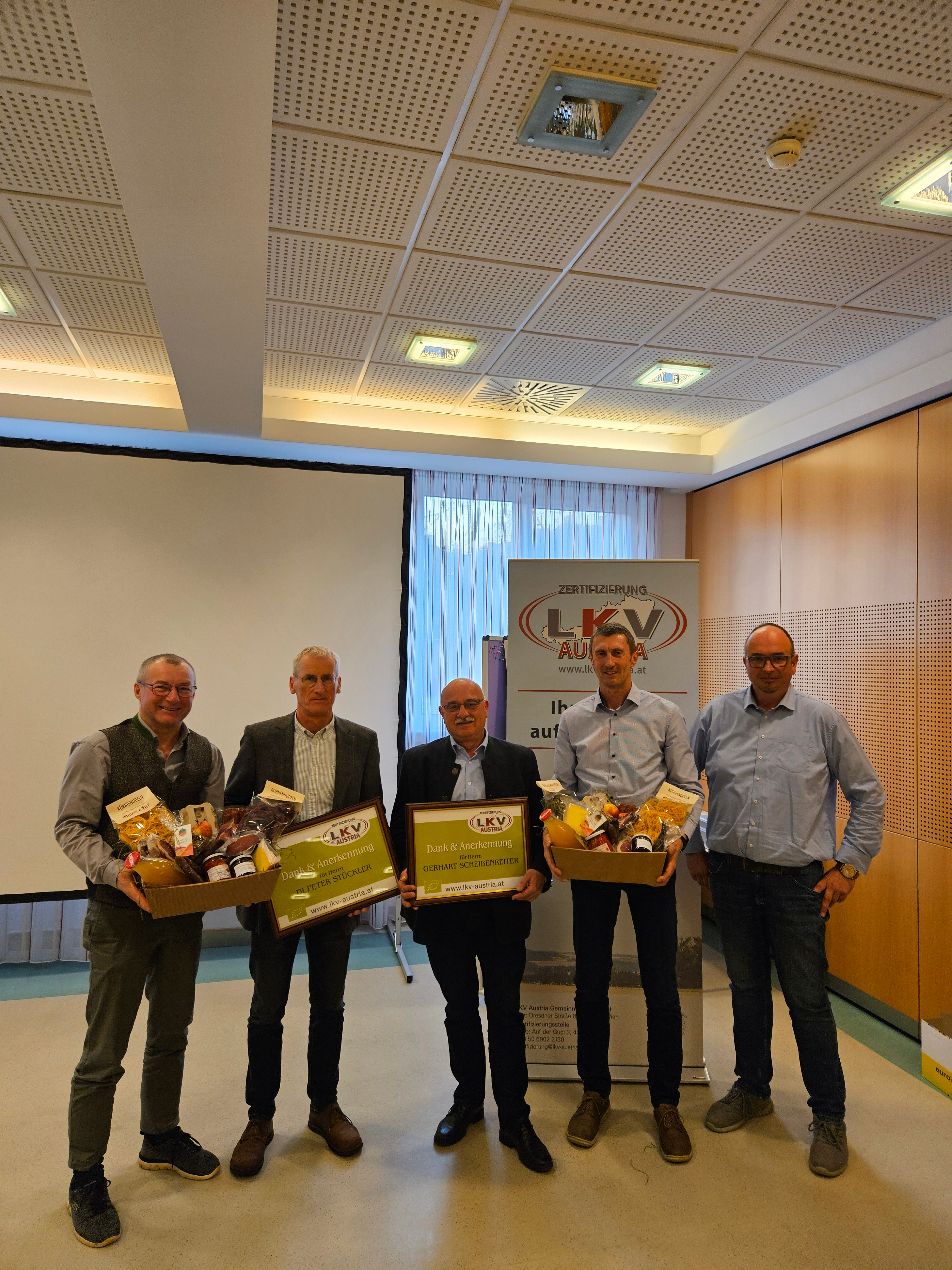 Besonderer Dank für das langjährige Engagement für die LKV Austria wurde Gerhard Scheibenreiter (Qualitätsmanagement LKV Niederösterreich) und DI Peter Stückler (Geschäftsführer LKV Steiermark) ausgesprochen. Die LKV Austria wünscht beiden alles Gute für die bevorstehende Pensionierung.