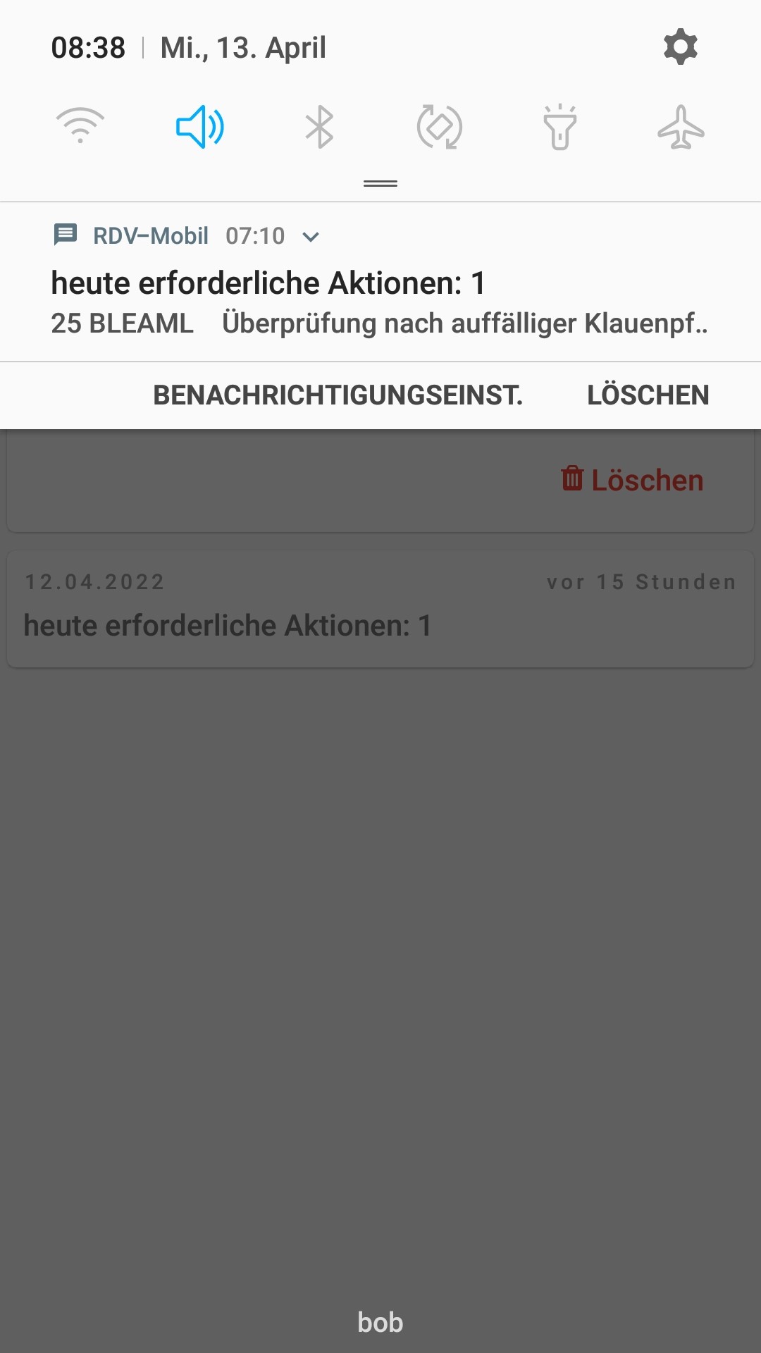 Die RDV-Mobil App erinnert dich künftig an Brunstereignisse, Trächtigkeitskontrollen, Kalbetermine, Anfütterungen, Trockenstelltermine und vieles mehr. Am Tag des Ereignisses bekommst du in der Früh eine Benachrichtigung. Die ausständigen Ereignisse sind dann unter dem neuen Menüpunkt „Nachrichten" im Hauptmenü zu finden.