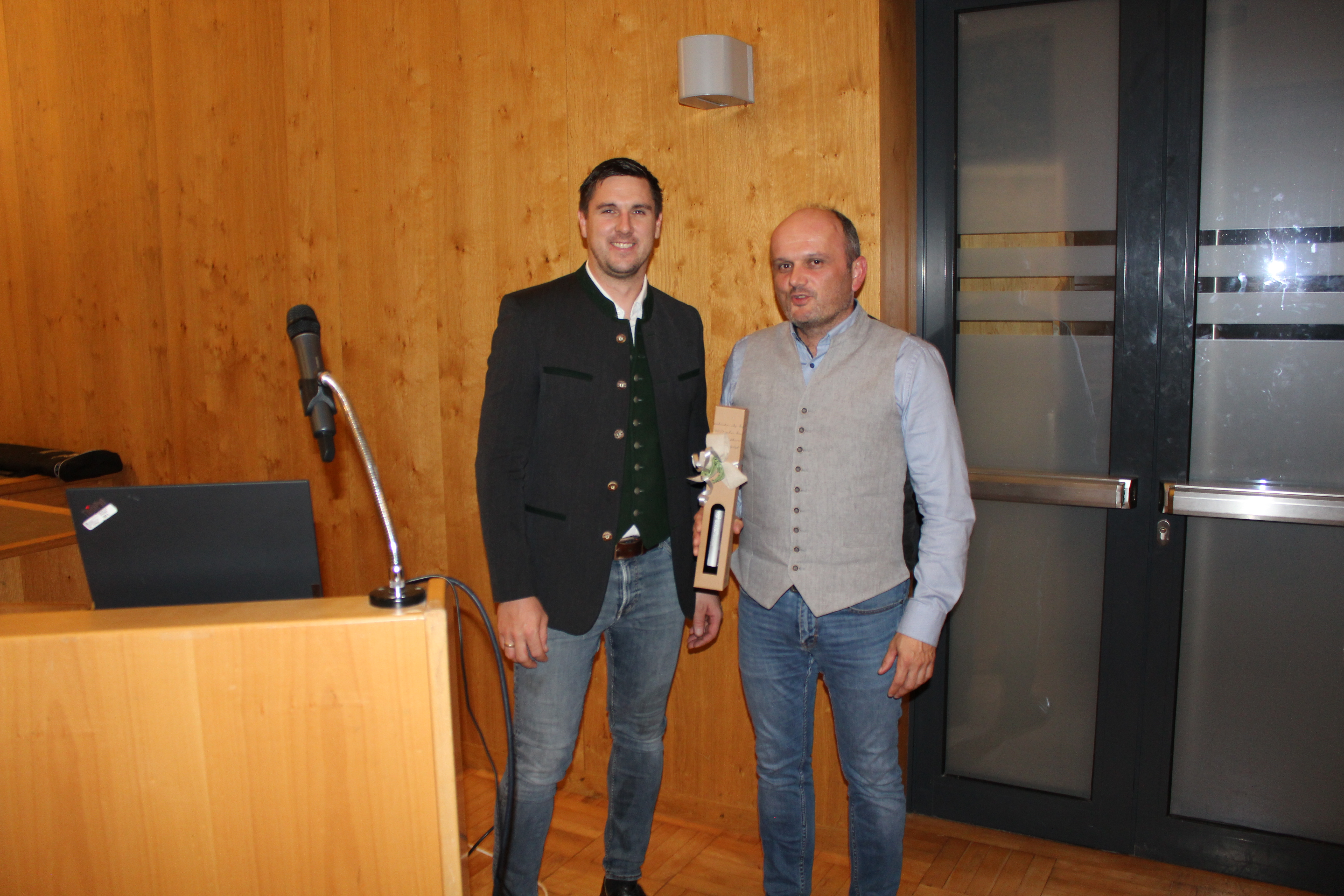 Links Obmann Perwein dankt dem langjährigen Obmann Stv. Schwärzer für seine Dienste