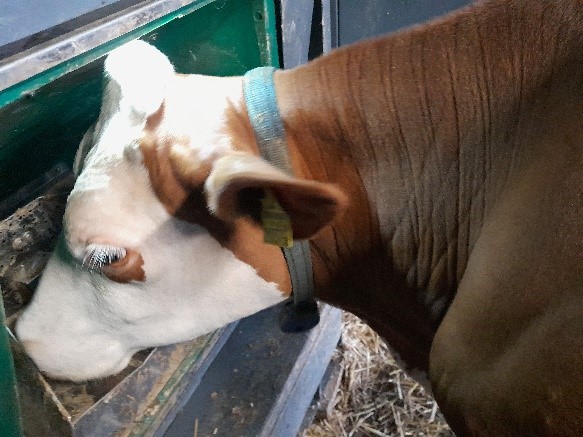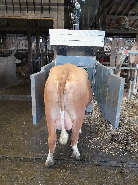 Bild: Eine Kuh des Betrieb Lehofer während der Greenfeed Messung
