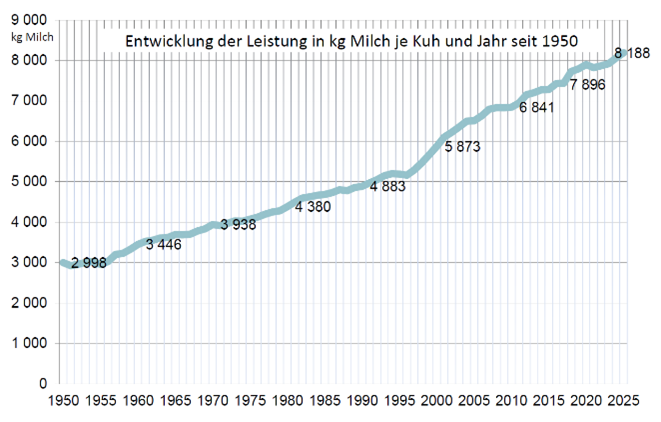 Entwicklung der Milchleistung in Österreich seit 1950.