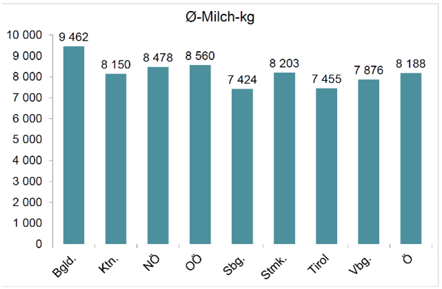 Durchschnittliche Milchleistungen aller Kontrollkühe (Vollabschlüsse) in Österreich nach Bundesländern.