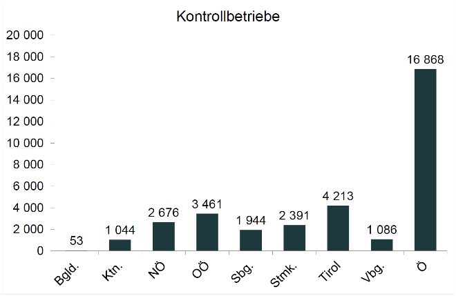 Anzahl der Kontrollbetriebe in Österreich in den jeweiligen Bundesländern.